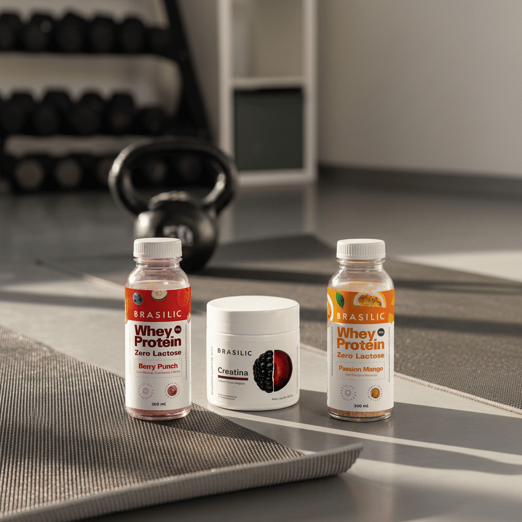 O Combo Creatina Frutas Negras + Whey Brasilic reúne praticidade, sabor e performance em um único kit. A creatina saborizada entrega mais força, energia e recuperação com uma dissolução perfeita e um sabor refrescante de frutas negras. Já o whey zero lactose em garrafinhas monodose traz 25g de proteína por dose e um blend intenso feito com frutas liofilizadas e adoçado naturalmente com stevia — é só adicionar água, agitar e beber.