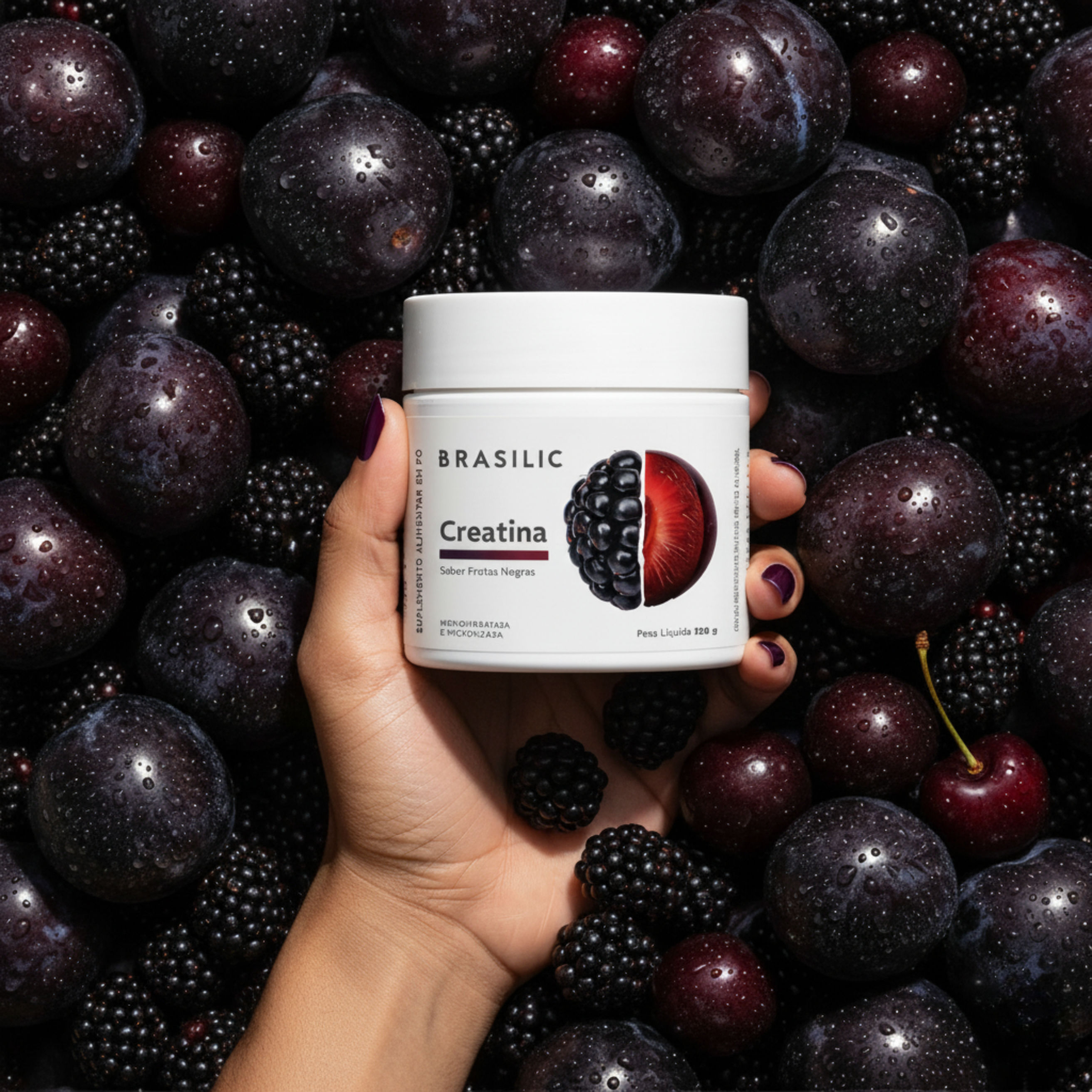 A Creatina Monohidratada e Micronizada Brasilic no sabor Frutas Negras é o suplemento mais fácil de incluir na sua rotina. Ela combina a máxima eficácia da creatina monohidratada (a forma mais cientificamente comprovada) com a melhor experiência de consumo.